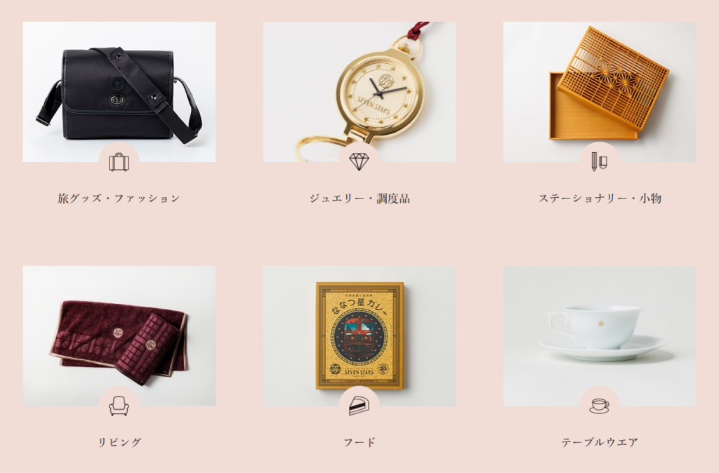 特別な旅行は記念品やお土産を買っていきたいところ。ななつ星にもたくさんのグッズが販売されています。それらは実際に車内で使われている備品・食器類・装飾品・クルーの道具など、さまざまなジャンルが存在します。