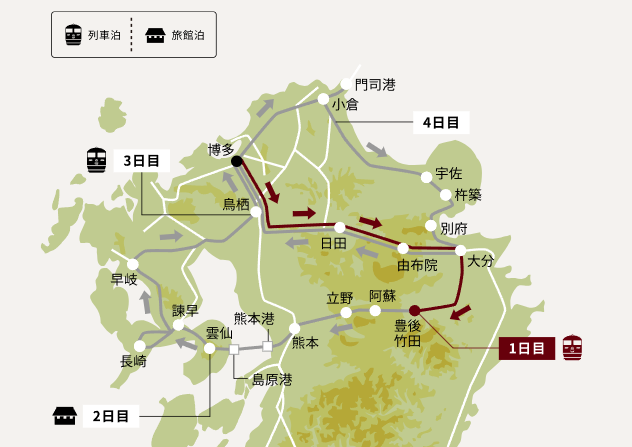 今回、我々が当選したコースは「3泊4日雲仙コース」。部屋は「DXスイートA」です。4日かけて九州の北半分を行ったり来たりします。