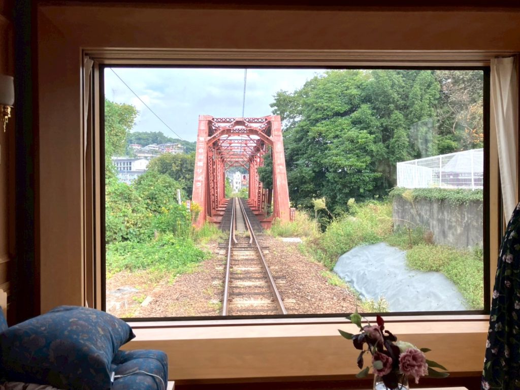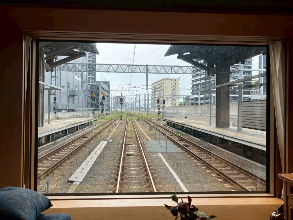 DXスイートAに限らず、ななつ星の車体に取り付けられた窓枠はすべて額縁をイメージして作られており、そこに映る車窓はすべて作品(絵画)に見立てられます。常に移りゆく車窓はいつまでも眺めていることができました。