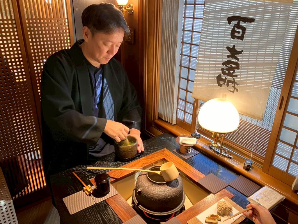 茶司の德淵さんにお茶を入れて頂けるのですが、「作法は気にせず召し上がってください」と言って頂けました。